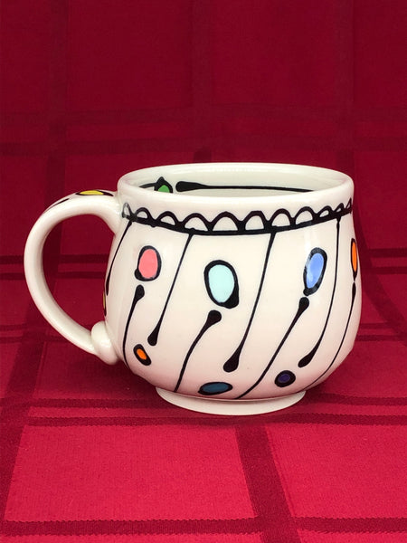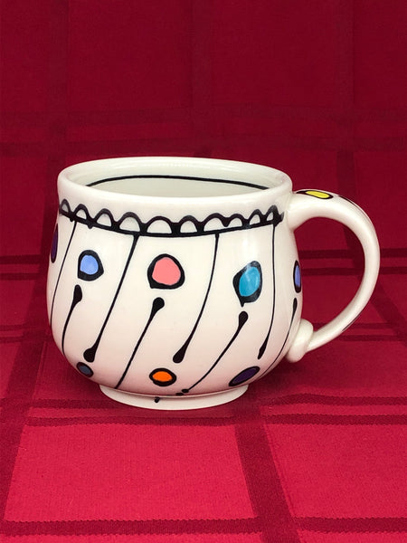 A popular item, this wheel thrown, porcelain mug will become a favorite! The mug fits perfectly in your hand and is wonderful with both hot and cold drinks.